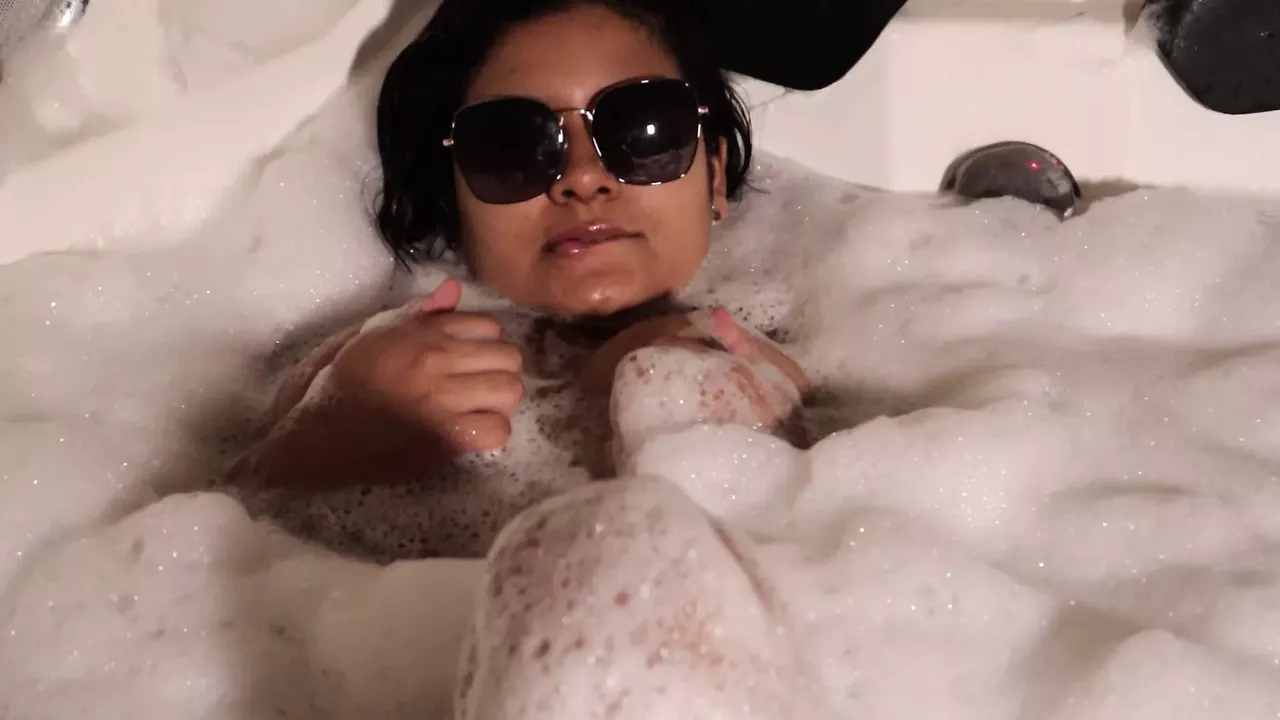 Busty Latina mischief in the hot tub