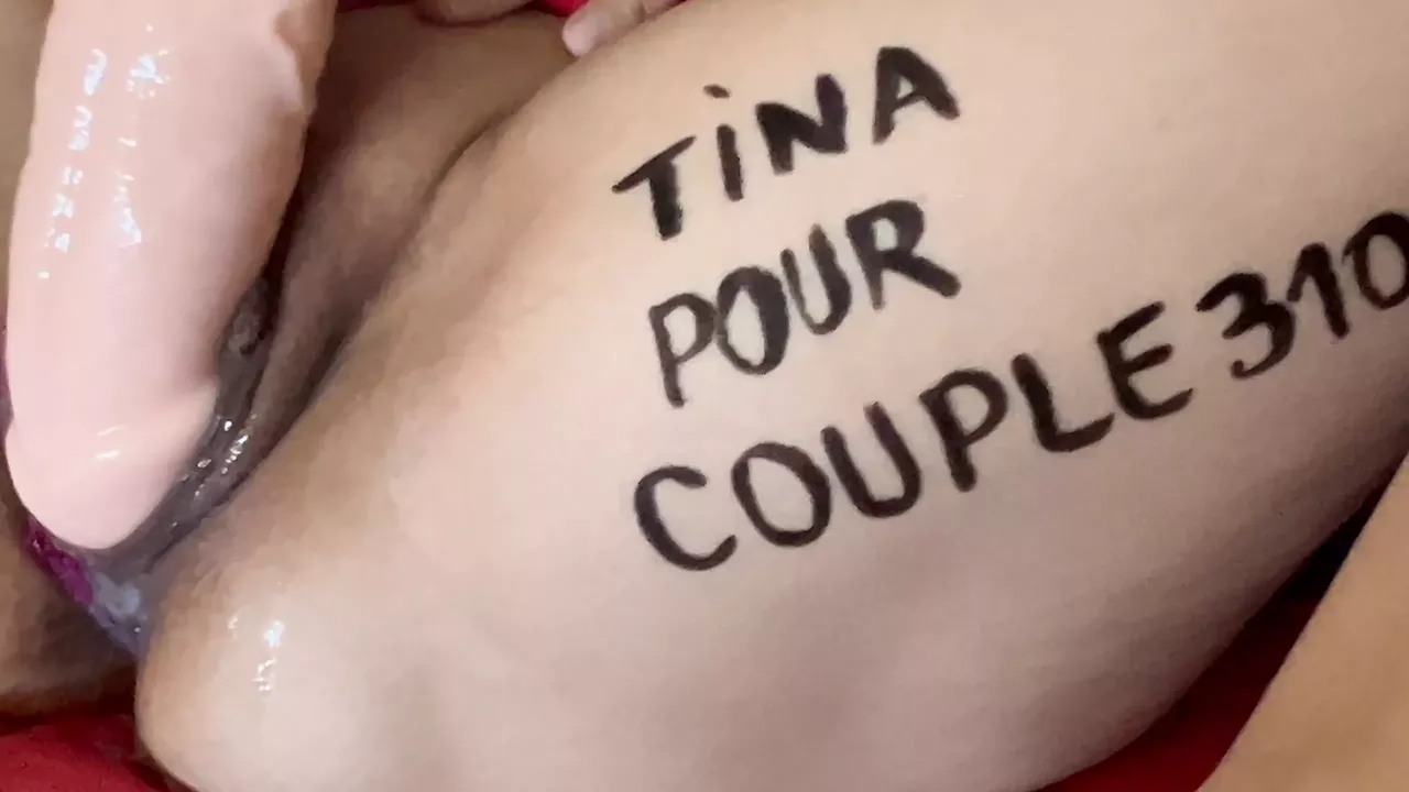 Dedicace Tina french sexy slut creampie fuck hard pussy whith big dildo XL couple3109 write on legs comments this bitch