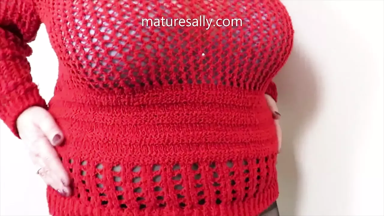 Mature Sally in tight red top and black pantyhose